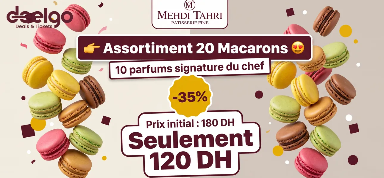 Succombez à un assortiment raffiné de 20 macarons artisanaux – 10 parfums signature du chef chez MEHDI TAHRI (MT Atelier).